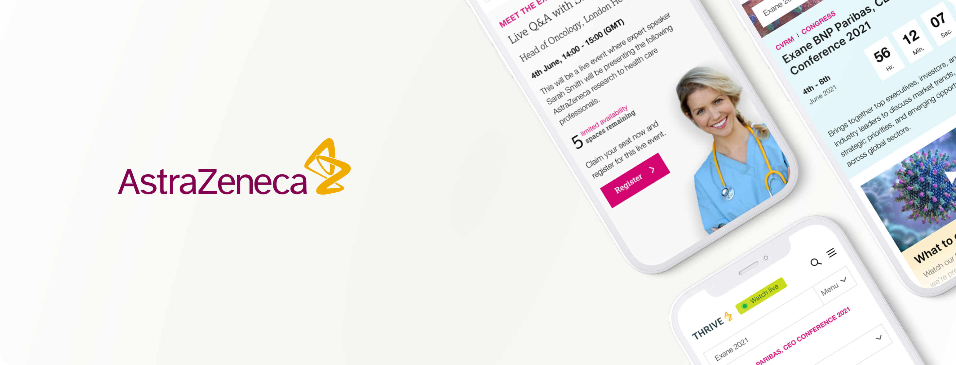 We created the Thrive platform, combining high-quality visuals, interactive content, and intuitive design. Users could personalise their experience, accessing articles, data and sessions that matched their interests and professional needs. By organising content and highlighting key insights, Thrive helped AstraZeneca’s audience absorb complex information quickly and effectively.